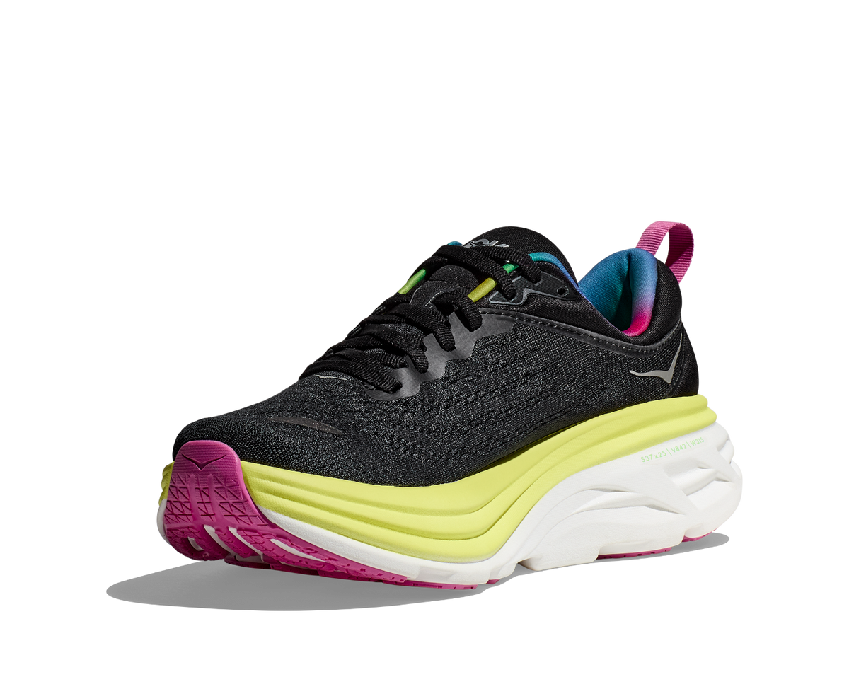 Bondi 8 ปรับโฉมใหม่ด้วยโฟมที่นุ่มกว่า เบากว่า และรูปทรงส้นที่ขยายใหม่เอี่ยม แผ่นกันกระแทกด้านหลังทำให้เกิดการกระแทกอย่างเหลือเชื่อและสมดุลอย่างไม่น่าเชื่อตั้งแต่การกระแทกส้นเท้าไปจนถึงปลายเท้าเป็นรองเท้าวิ่ง และ เดิน ได้ทุกวัน