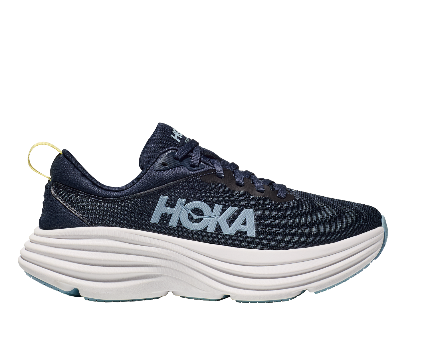 Bondi 8 ปรับโฉมใหม่ด้วยโฟมที่นุ่มกว่า เบากว่า และรูปทรงส้นที่ขยายใหม่เอี่ยม แผ่นกันกระแทกด้านหลังทำให้เกิดการกระแทกอย่างเหลือเชื่อและสมดุลอย่างไม่น่าเชื่อตั้งแต่การกระแทกส้นเท้าไปจนถึงปลายเท้าเป็นรองเท้าวิ่ง และ เดิน ได้ทุกวัน